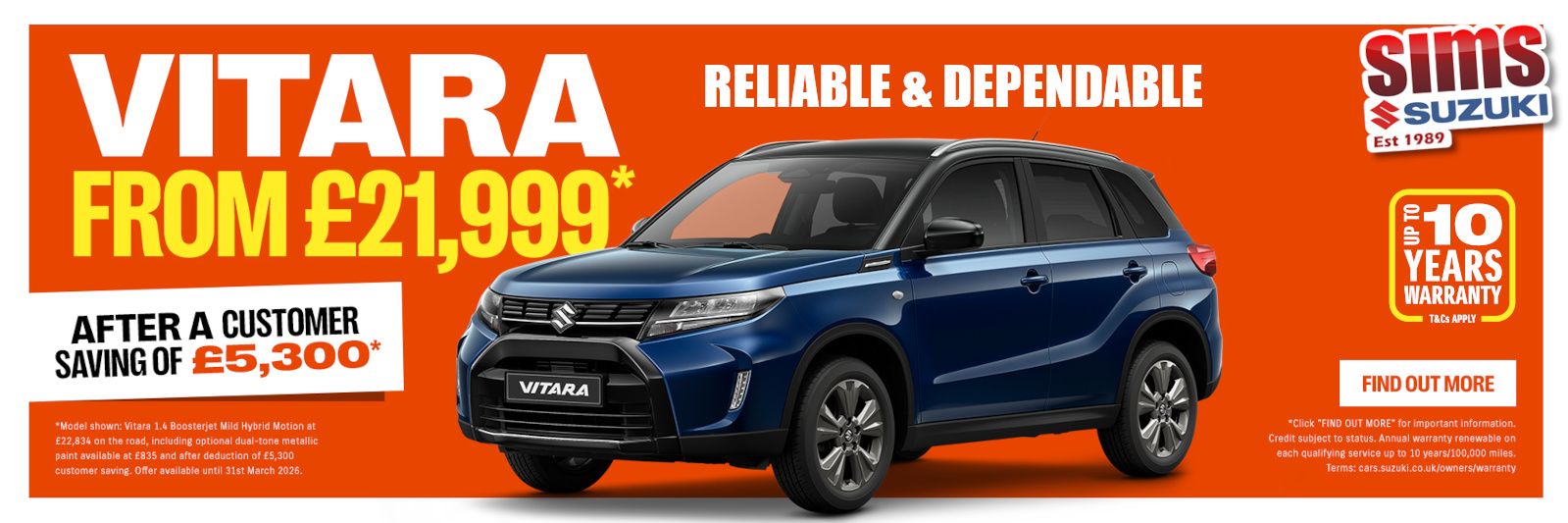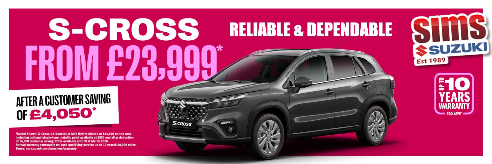 Welcome to Sims Suzuki, your trusted, friendly Suzuki main dealer offering new Suzuki cars, quality used cars, expert vehicle servicing, and a fully stocked genuine Suzuki parts department with nationwide delivery across the UK.