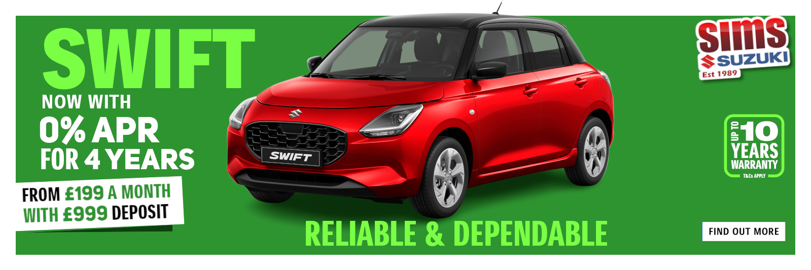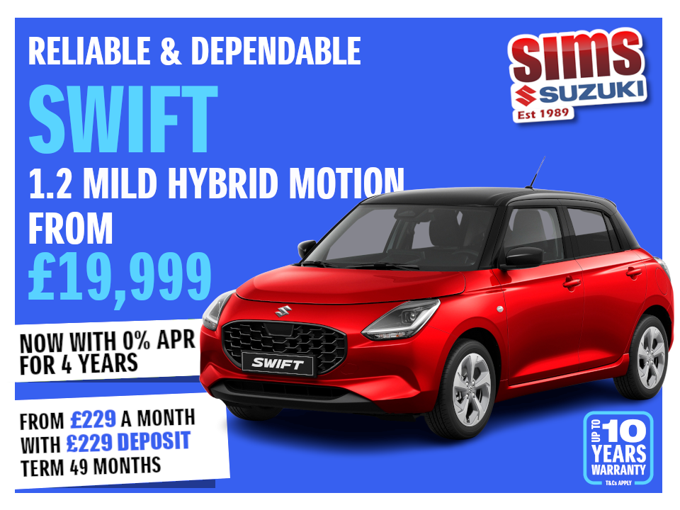 Amazing 2026 Swift offers - Get a Brand New Swift with 0% Finance and Zero Deposit and from only £219 per month over 48 months. Read More