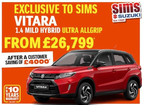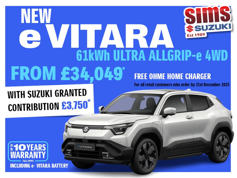 All new e-Vitara Available to test drive now at Sims Suzuki. 10 Year Warranty inc Battery. £3750 off with Suzuki Granted Discount Read More