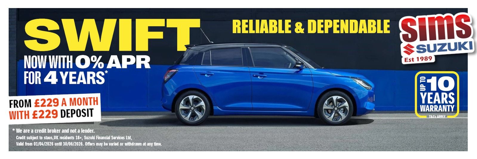 Amazing 2026 Swift offers - Get a Brand New Swift with 0% Finance and Zero Deposit and from only £219 per month over 48 months. Read More