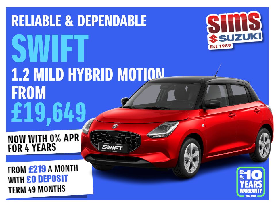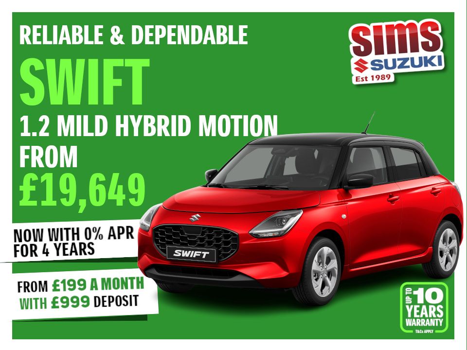 Amazing 2026 Swift offers - Get a Brand New Swift with 0% Finance and Zero Deposit and from only £229 per month over 48 months. Read More