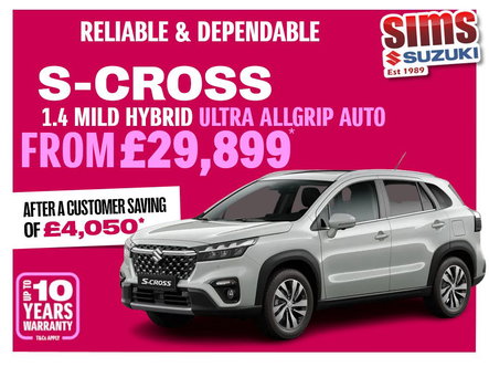 Invalid Date NEW Suzuki S-Cross 1.4 Ultra 2WD 48V hybrid 5dr is offered to you for sale in Darlington , Durham, finished in White, this NEW Suzuki S-Cross 1.4 Ultra 2WD 48V hybrid 5dr is one of many rare and desirable vehicles that used car dealer Sims Suzuki, Darlington , Durham have available for sale.